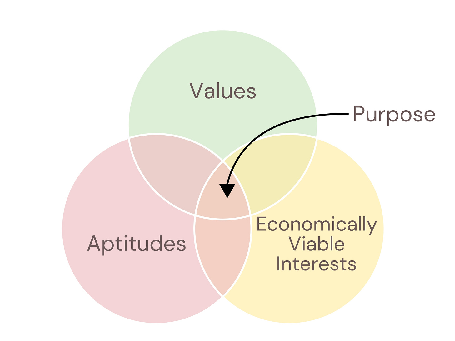 Together, these three layers form a kind of Venn diagram. Your purpose sits in the overlap.